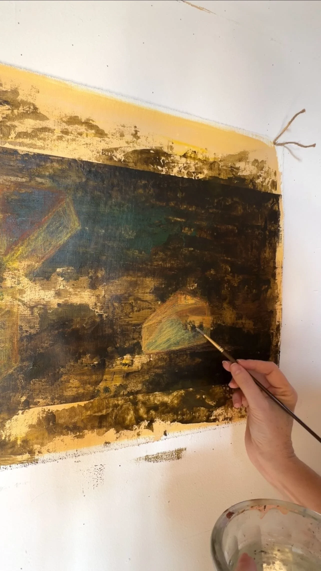 Mixed Media: Photographs of New Orleans, Louisiana on canvas with gold acrylic paint, matted, and framed in natural wood.